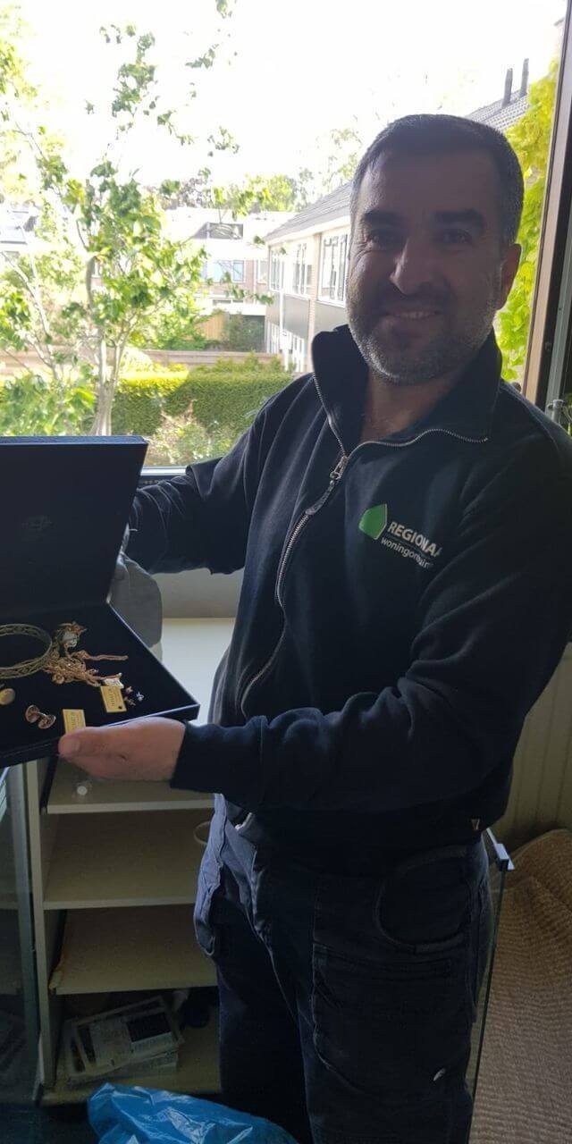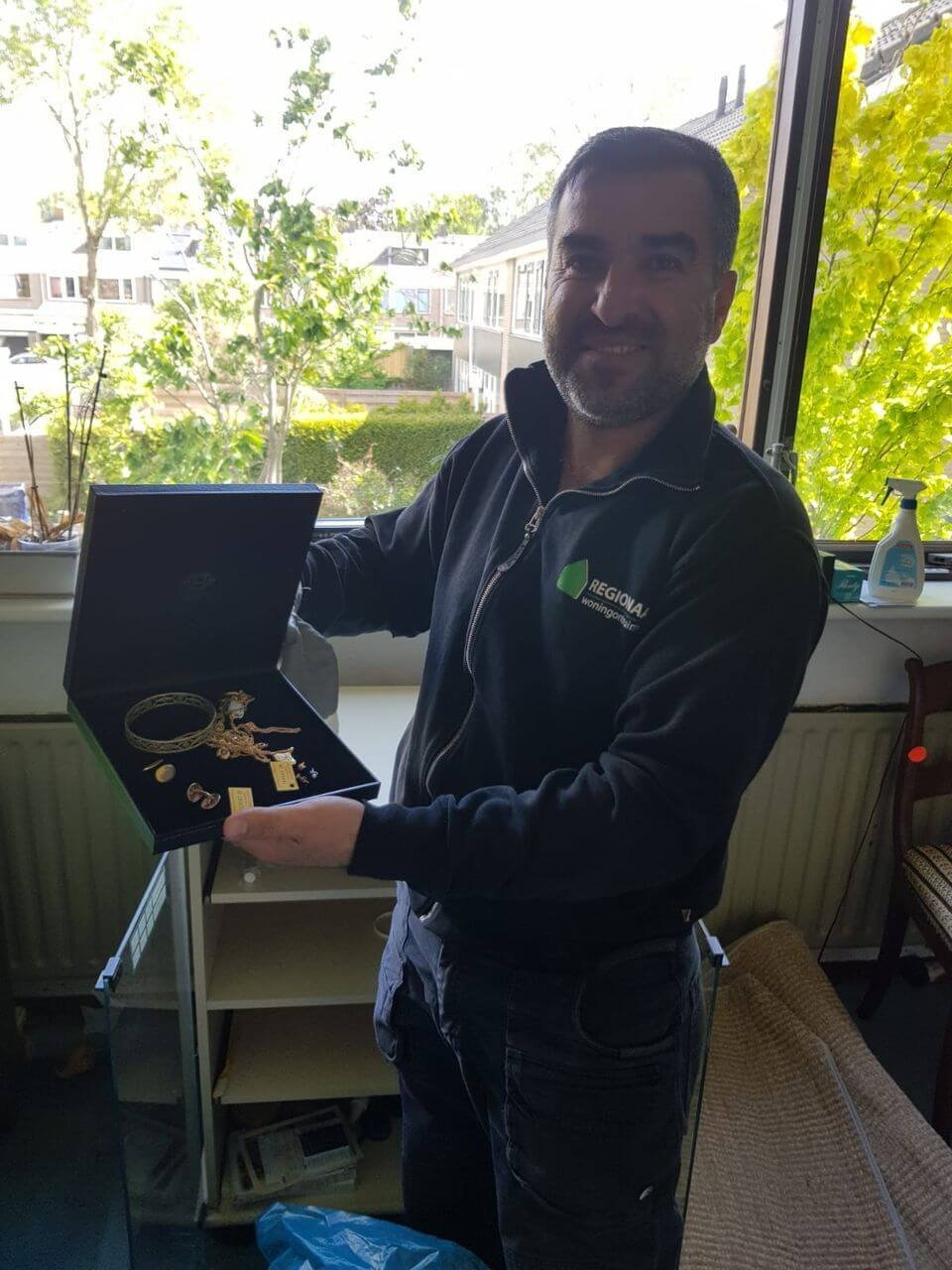 Er zijn beelden / krantenkoppen genoeg van, in de woningontruiming branche dat er vaak juwelen en/of geld gevonden wordt, de eeuwige vraag is dan altijd hoe doet Woningontruiming Regionaal dat? Tijdens ons offertegesprek lopen we samen door de woning waarbij we kijken wat wij eventueel kunnen aanbieden bij onze partner veilinghuizen. U krijgt natuurlijk alle kans om zelf door de woning en inboedel mee te nemen, welke u zelf wil hebben. Soms ziet u / uw naasten iets over het hoofd en komen wij dit tegen in de ontruiming! Onze medewerkers zijn geschoold en in het bezit van een Verklaring Omtrent Gedrag (VOG), de spullen welke wij dan tegenkomen worden in overleg met de klant afgeleverd / opgestuurd naar de rechtmatige eigenaar welke dit uiteraard toekomt!