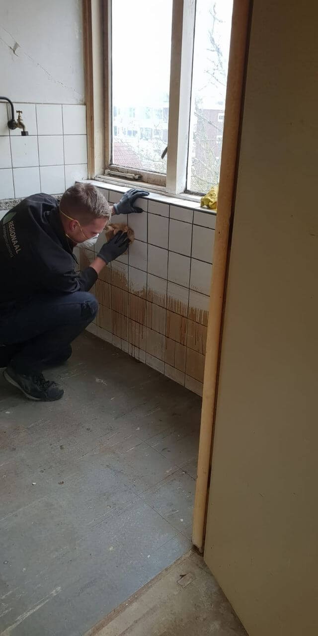 Nadat de boedel uit een woning wordt weggehaald komen er soms vervuilde plekken naar voren. Onze medewerkers weten intussen precies hoe ze dit moeten aanpakken. Zo is de muur in de keuken flink van opgeknapt na het schoonmaken. De makelaar die de woning verkoopt was zeer tevreden over de huisontruiming.